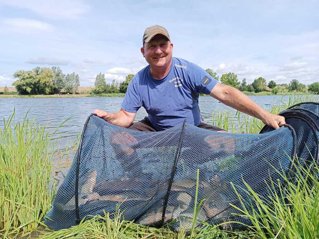 Am Tag darauf konnten auch wieder gute Ergebnisse erzielt werden. Dabei ist sogar das Rekordfanggewicht vom Jahr 2020 egalisiert worden. Dies geling dem ehemaligen badischen Meister im Feederangeln Bernd Frisch mit rund 21 Brassen und stolzen 31.630 Gramm. Somit darf er sich zum ersten Mal in seiner bisher doch recht kurzen Mitgliedschaft Fischerkönig nennen. Dabei ging er taktisch klug vor. Er legte sich einen Futterplatz mit der Feederrute und einen mit der Stipprute an. Gestartet ist er mit der Stippe, doch als ein Nachbar die erste Brasse mit dem Futterkorb fing zögerte Bernd nicht lange und stieg auf dieselbe Angelart um. Kaum war der mit Leckereinen gefüllte Feeder auf dem Grund biss schon die erste Brasse. Danach alle anderen im gefühlten Minutentakt.