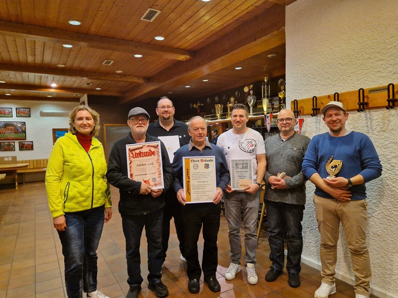 Mit zwei „weinenden“ Augen verabschiedete Andre den bis dato 1. Vorsitzenden Wieland Frank, Gerätewart Udo Müller und Beisitzer Martin Hegmann. Wieland teilte der Vorstandschaft bereits im Frühjahr 2024 mit, dass er nach 30 Jahren im Amt als 1. Vorsitzender und 38 Jahren in der Vorstandschaft, aus privaten und geschäftlichen Gründen, nicht mehr zur Wahl stehen wird. Udo Müller entschied sich nach 25 Jahren Vorstandschaft krankheitsbedingt für das Amt des Gerätewartes nicht mehr anzutreten und Martin Hegmann änderte seinen Wohnort und teilte ebenfalls mit, nicht mehr zur Wahl anzutreten. Martin war 15 Jahre im Amt des Beisitzers und hatte die Mitgliederverwaltung unter sich. Somit verließen 78 Jahre Erfahrung die Vorstandschaft. Aber alle drei haben der neuen Vorstandschaft zugesichert, gerne im Hintergrund Ihre Erfahrung und Unterstützung zu geben.